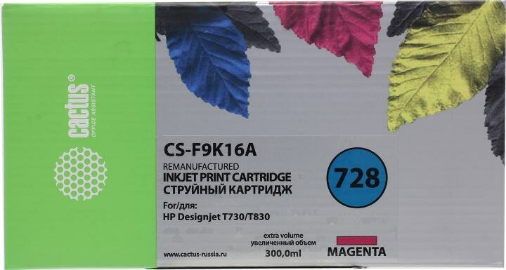 Купить Картридж струйный Cactus CS-F9K16A 728XXL пурпурный (300мл) для HP DesignJet T730, T830