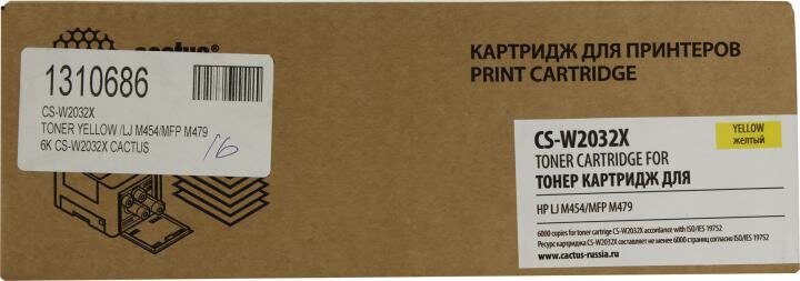 Картридж лазерный CACTUS (CS-W2032X) для HP LJ M454/MFP M479, желтый, ресурс 6000 страниц В комплекте: 1шт.