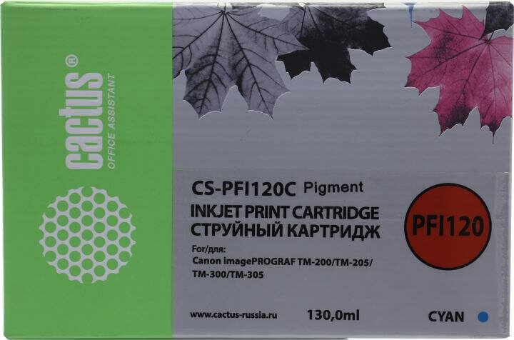 Картридж Cactus CS-PFI120C, PFI-120C, голубой пигментный / CS-PFI120C