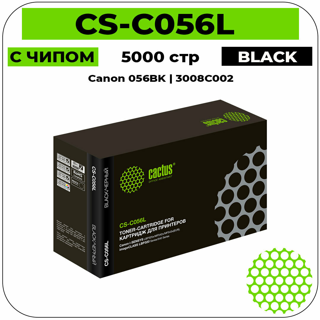Картридж лазерный CACTUS (CS-C056BK) для Canon i-SENSYS LBP325x/MF542x/543x, ресурс 10 000 страниц
