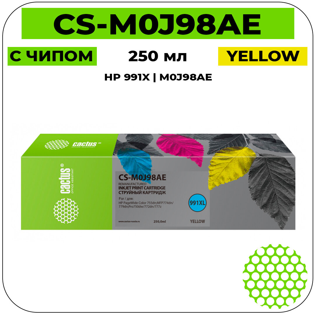 Картридж струйный Cactus CS-M0J98AE 991XL желтый (250мл) для HP PW 755dn/MFP774dn/779dn/Pro750dw/772dn