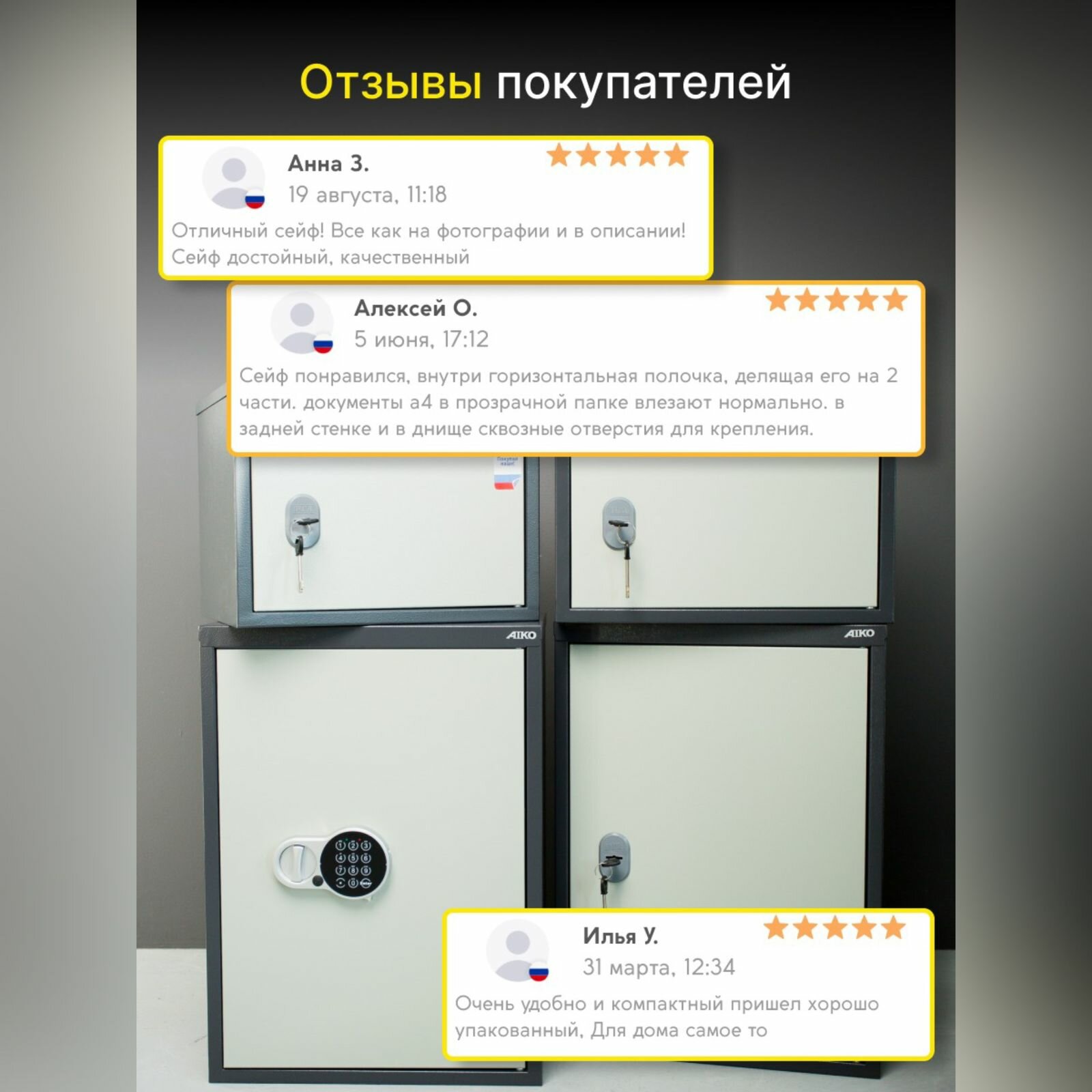 | Отзыв: | Хороший сейф, прочный, полка может демонтироваться. |