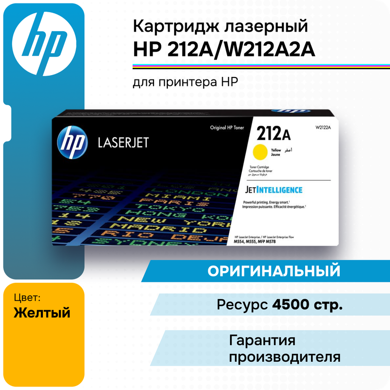 Картридж лазерный HP (W2122A) Color LaserJet M554/M555, №212A, желтый, оригинальный, ресурс 4500 страниц