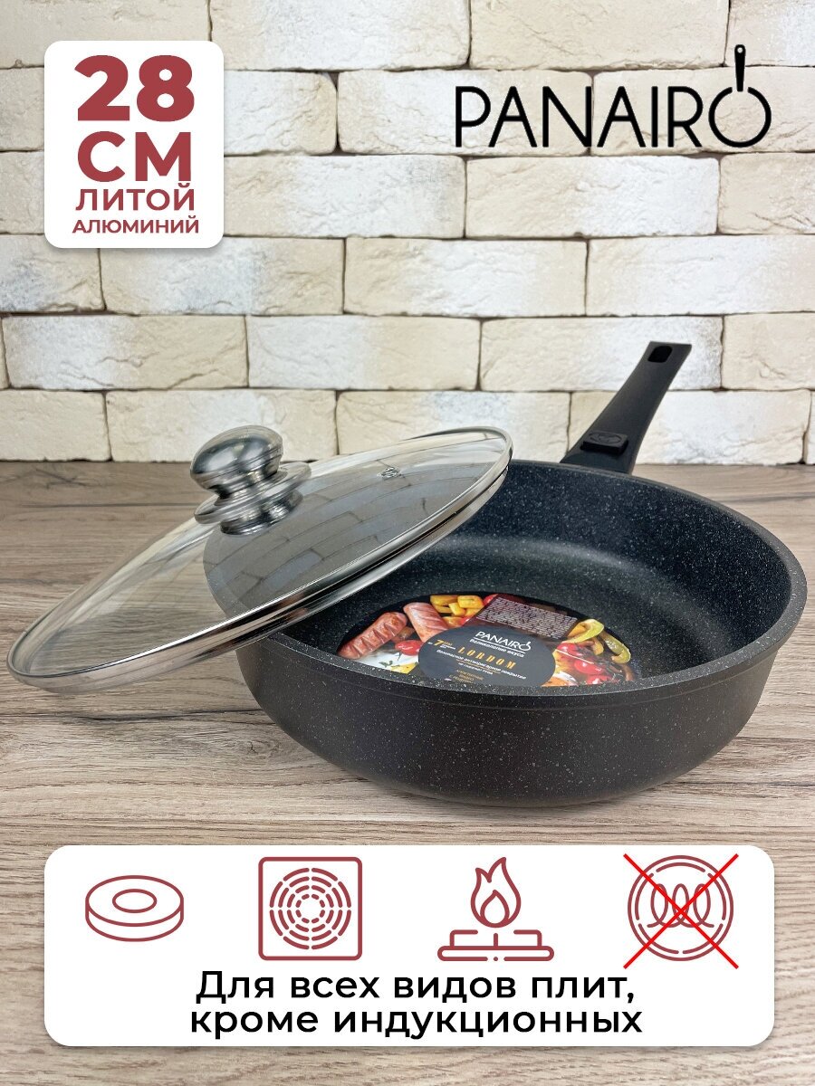 Купить Сковорода глубокая 28см PANAIRO "Lordom" c крышкой и съемной ручкой soft-touch