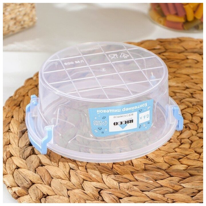 Контейнер пищевой RICCO, 600 мл, d=13,5 см, h=5,5 см, круглый, цвет прозрачный, голубой интересное: