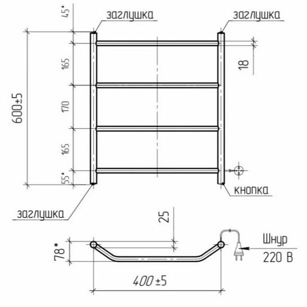 Полотенцесушитель Электрический Виктория, 400х600 мм