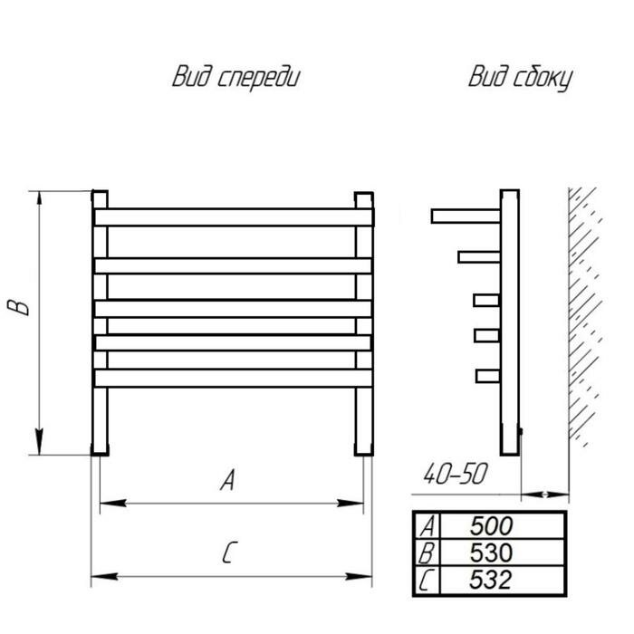 Полотенцесушитель Электрический Тругор Пэк сп 5 П 60х50 черный ВГП