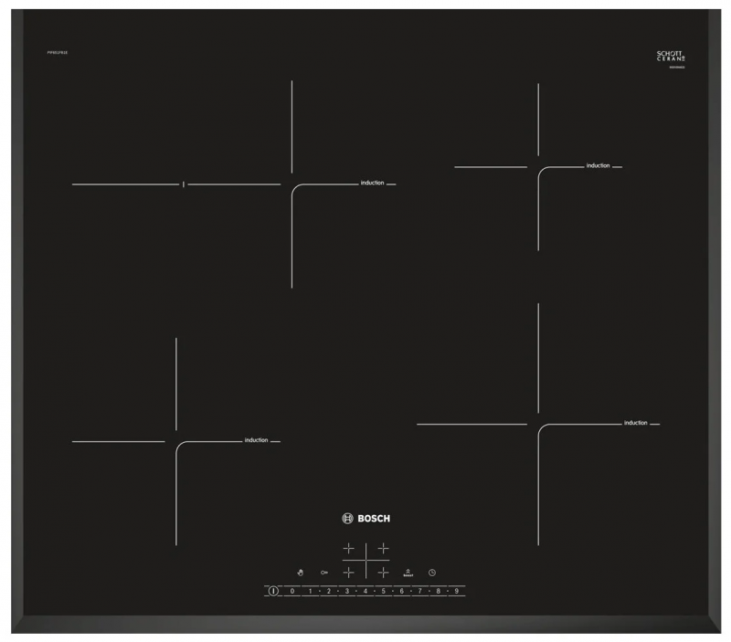 Варочная панель Bosch Индукционная, 60 см, индукция, скошенные края, сенсорное управление, черный