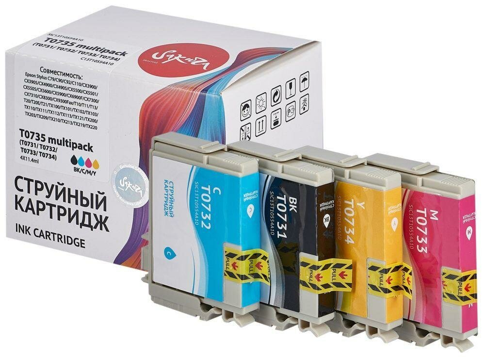 Купить Sakura Картриджи комплектом совместимый Сакура Sakura SIC13T10554A10 C13T10554A10 Multipack 4шт. 490 стр