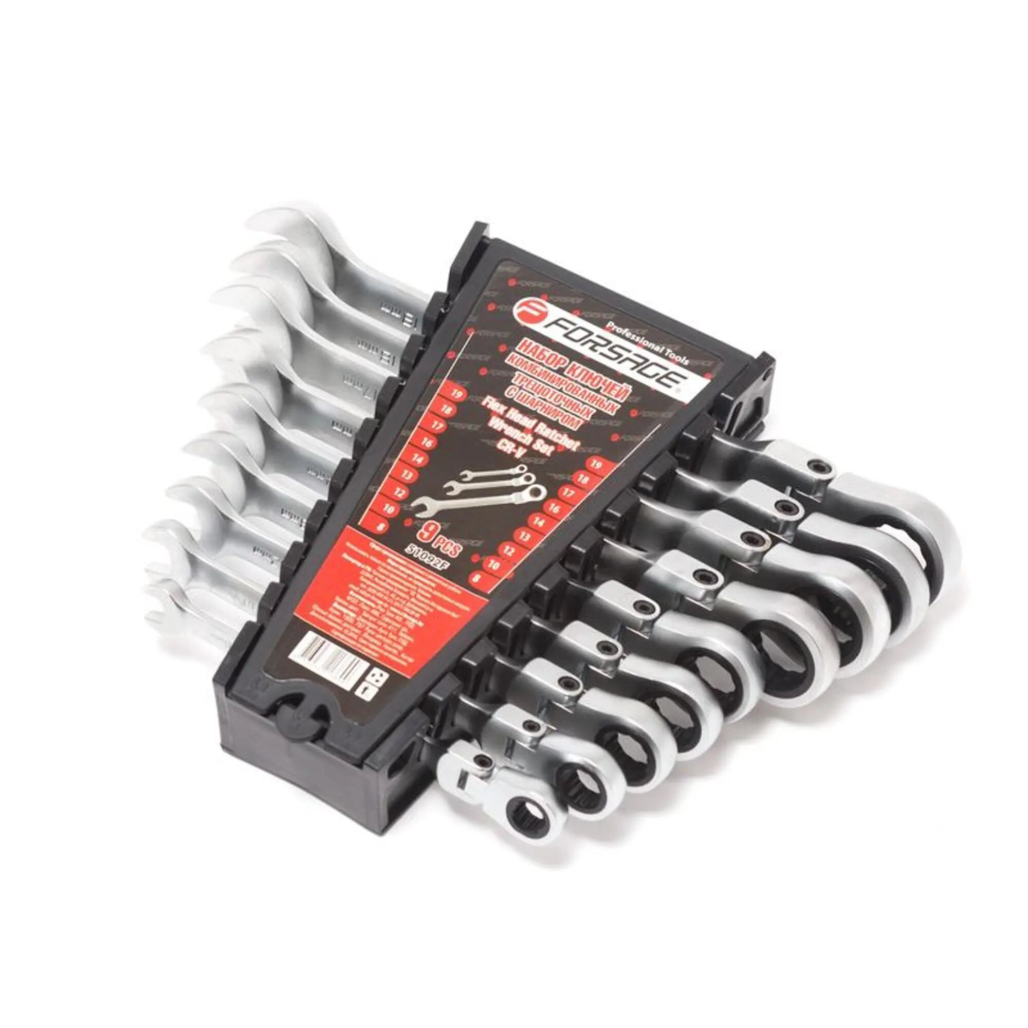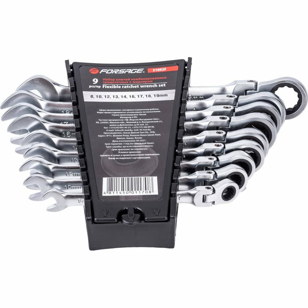 Набор ключей комбинированных трещоточных с шарниром, 9 пр: 8, 10, 12, 13, 14, 16, 17, 18, 19 мм, в, FORSAGE F51092F (1 шт.)