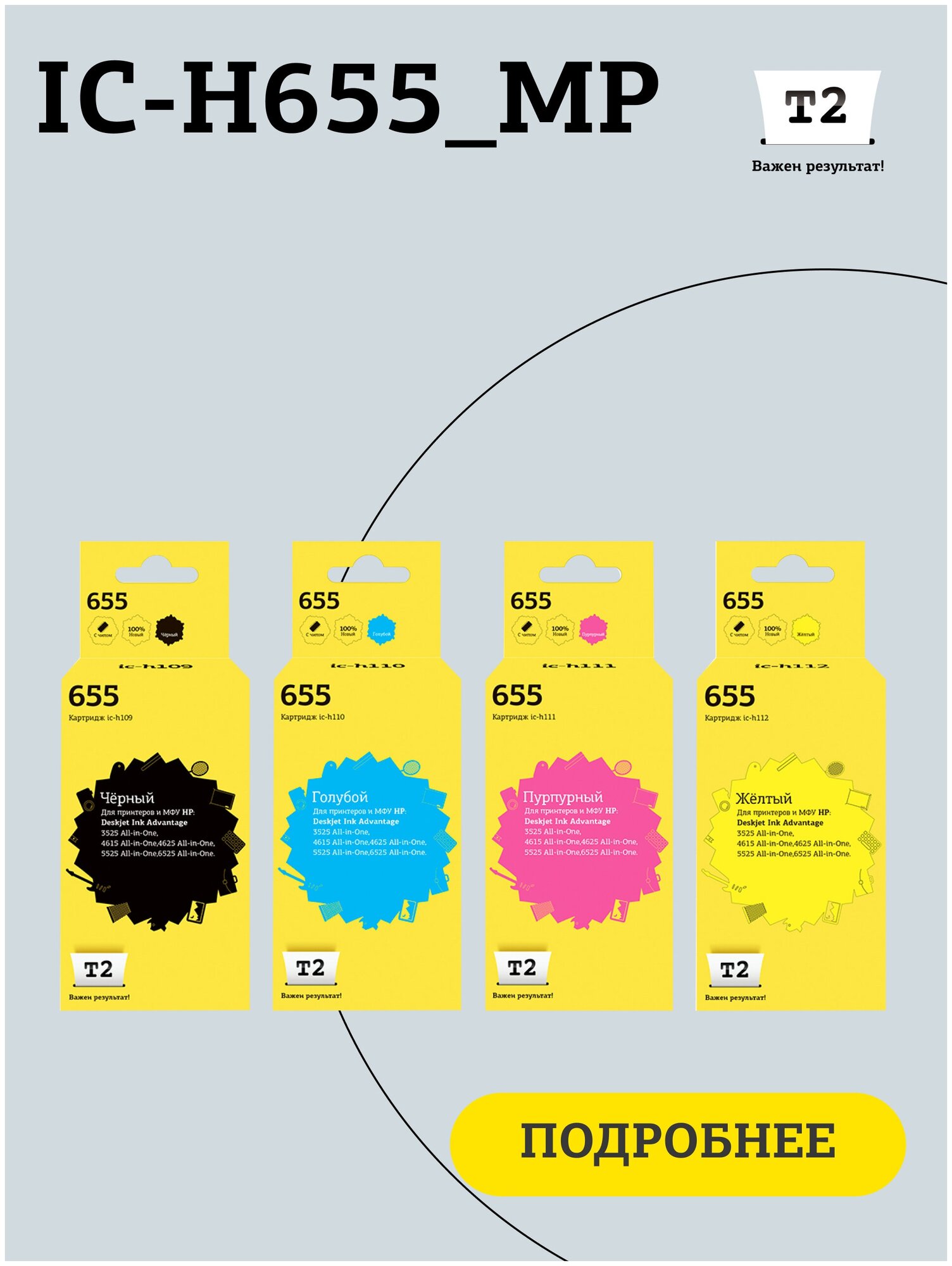 Комплект струйных картриджей T2 IC-H655_MP (CZ109A/655/Ink Advantage 665/109A) для принтеров HP, черный, голубой, пурпурный, желтый интересное: