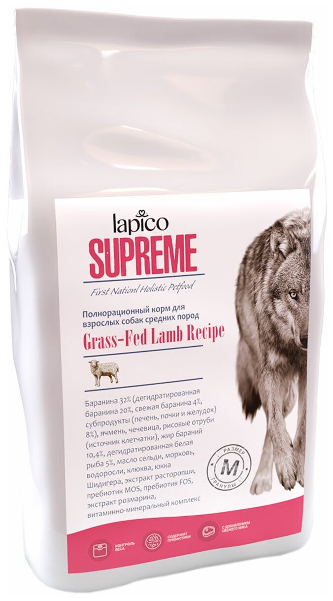 Купить Сухой корм Lapico SUPREME Grass-Fed Lamb Recipe Medium для собак средних пород с ягненком 2кг