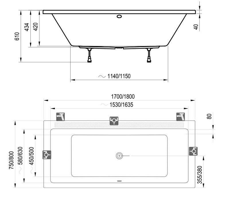 Formy 170х75см, акриловая ванна, прямоугольная, арт. C691000000, Ravak