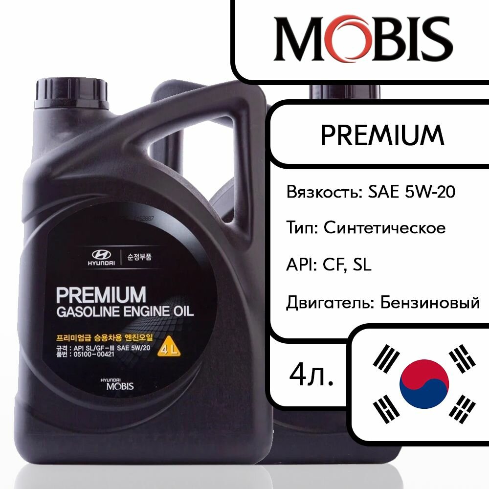 0510000421_масло моторное 5W20 (4L) Premium Gasoline (полусинт.)! KR\API SL MOBIS 0510000421