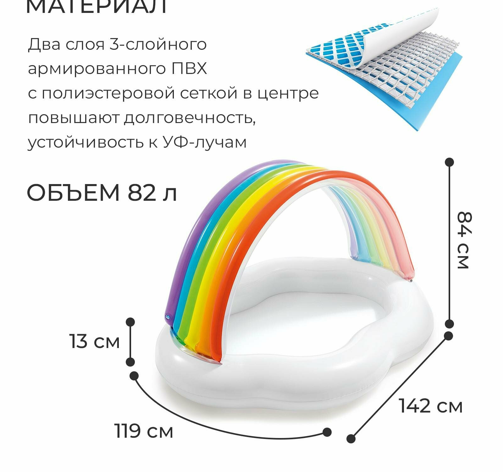 Бассейн надувной с навесом Облако 142 х 119 х 84 см, 82 л, 1-3лет. 57141 Intex интересное: