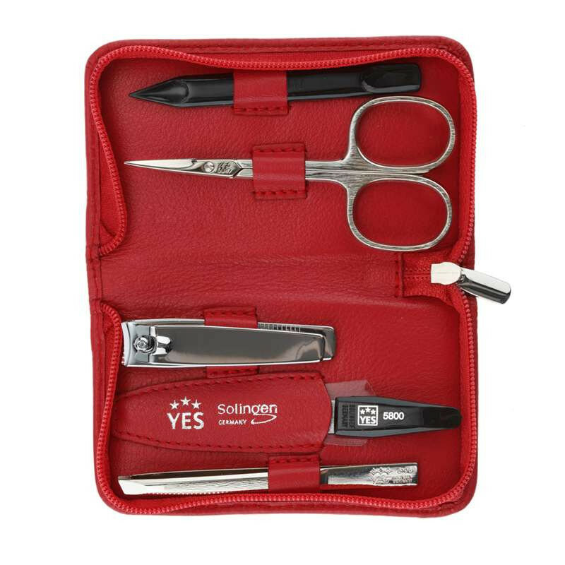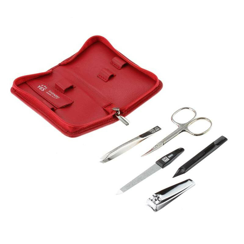 Маникюрный набор YES, 5 пр. Футляр: натуральная кожа, цвет красный