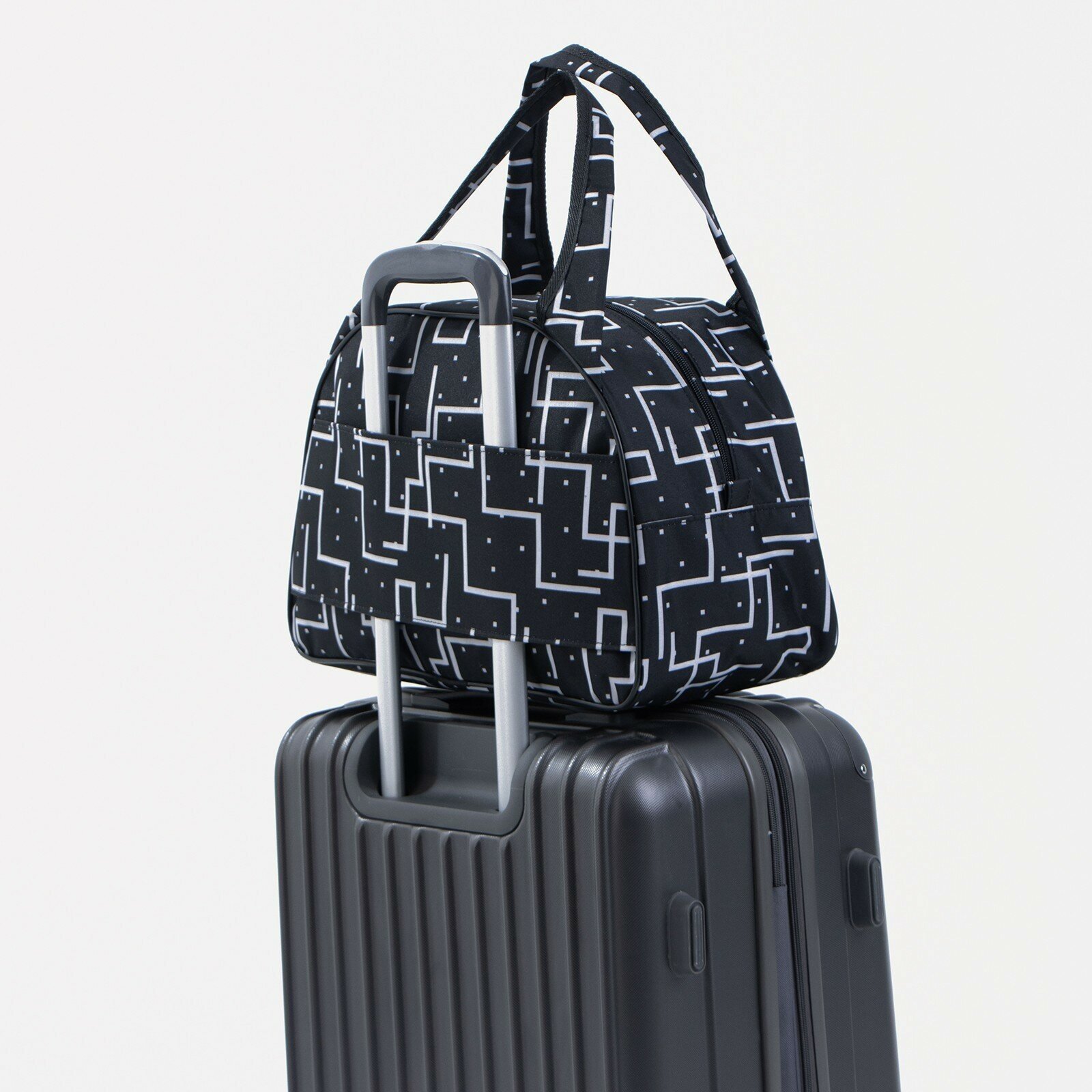 Сумка дорожная на молнии, держатель для чемодана, цвет чёрный / белый