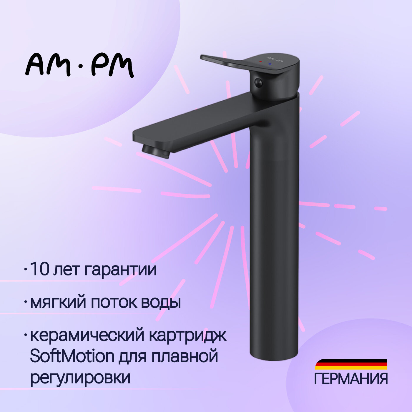 | Плюсы: | Отличный высокий смеситель для накладной раковины в ванную. Нравится AmPm фирма за дищайн и надёжность. |