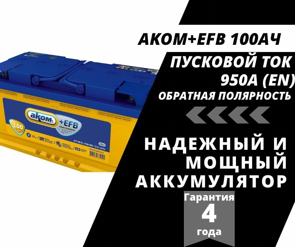 Аккумулятор автомобильный АКОМ + EFB 100Ач L+ EN950A прямой полярности
