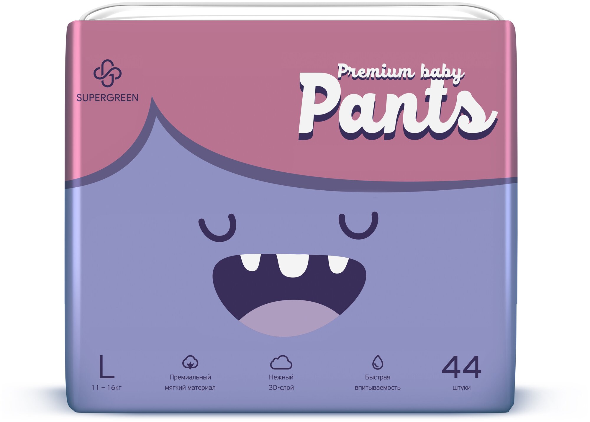 SUPERGREEN / Подгузники-трусики для детей SUPERGREEN Premium baby Pants, размер L (11-16 кг) 44 шт. интересное: