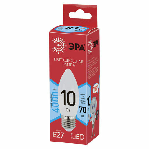 Лампа светодиодная ЭРА, комплект 5 шт., 10(85)Вт, цоколь Е27, свеча, нейтральный белый, 25000 ч, ECO LED B35-10W-4000-E27, Б0032965 интересное: