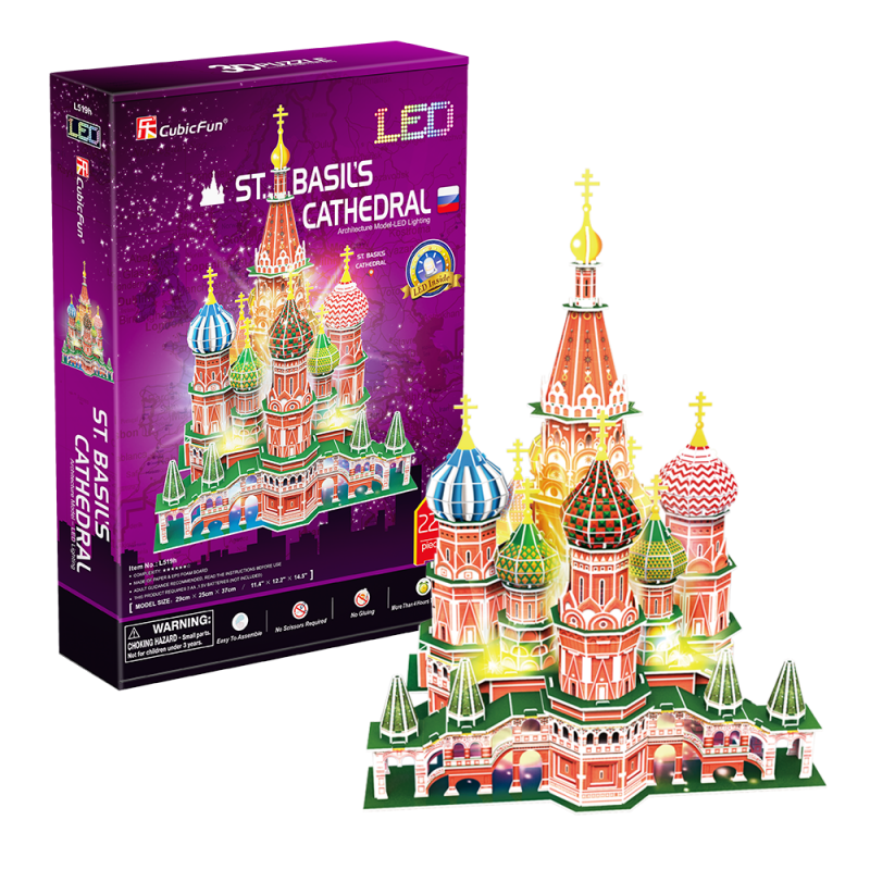Пазл 3D Cubicfun Храм Василия Блаженного с LED-подсветкой, 224 детали .