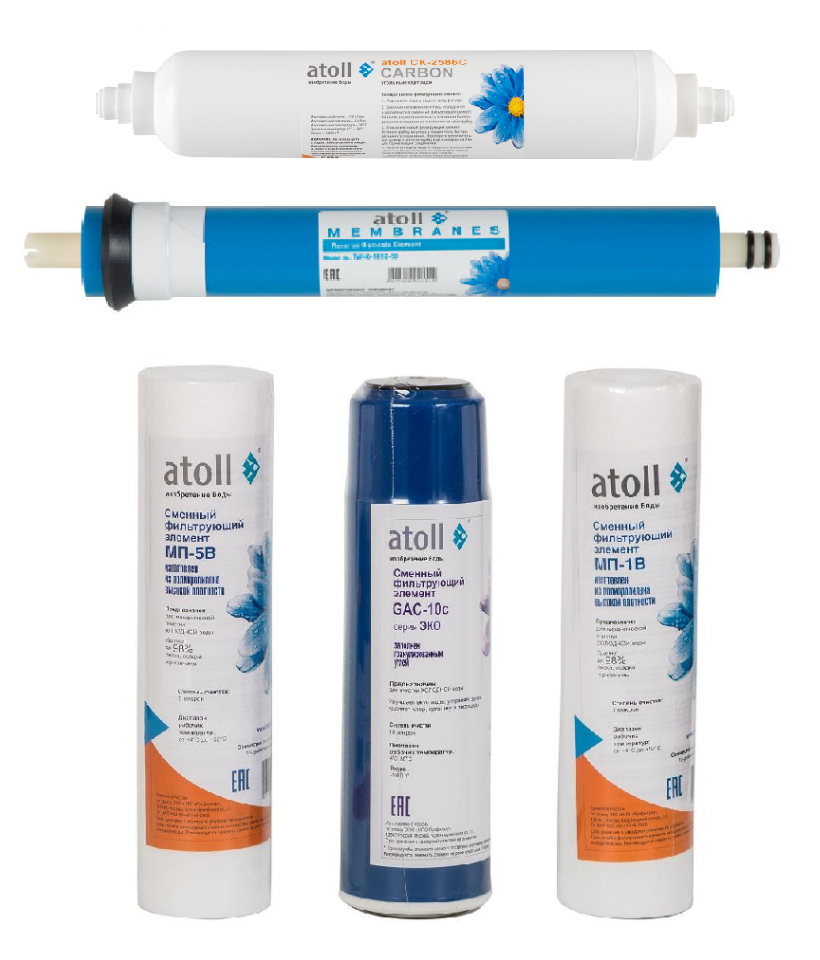Набор картриджей Atoll 5 ступеней с мембраной Atoll и постфильтром для Atoll A-550 STD, Atoll A-560E, Atoll A-550 Патриот интересное: