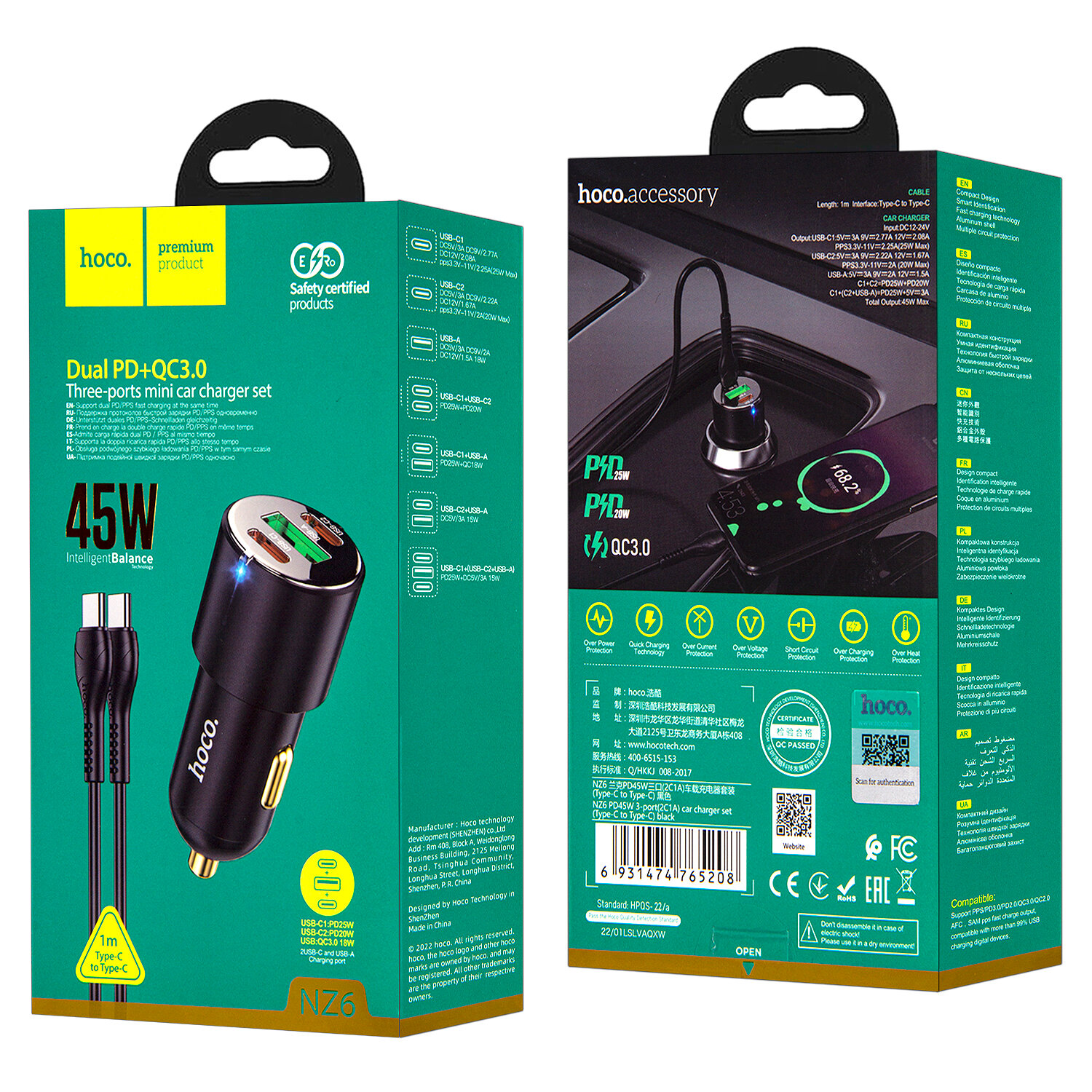 Автомобильное Зарядное Устройство Hoco NZ6 45W интересное: