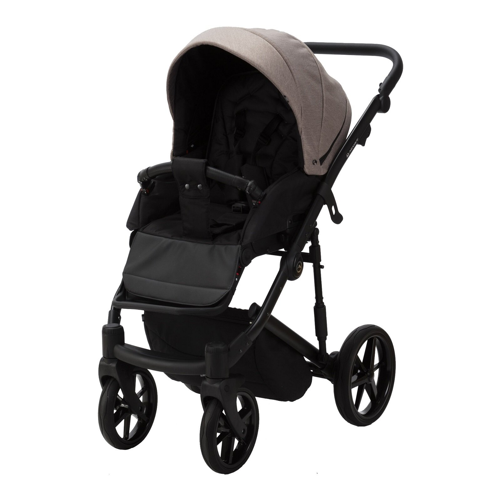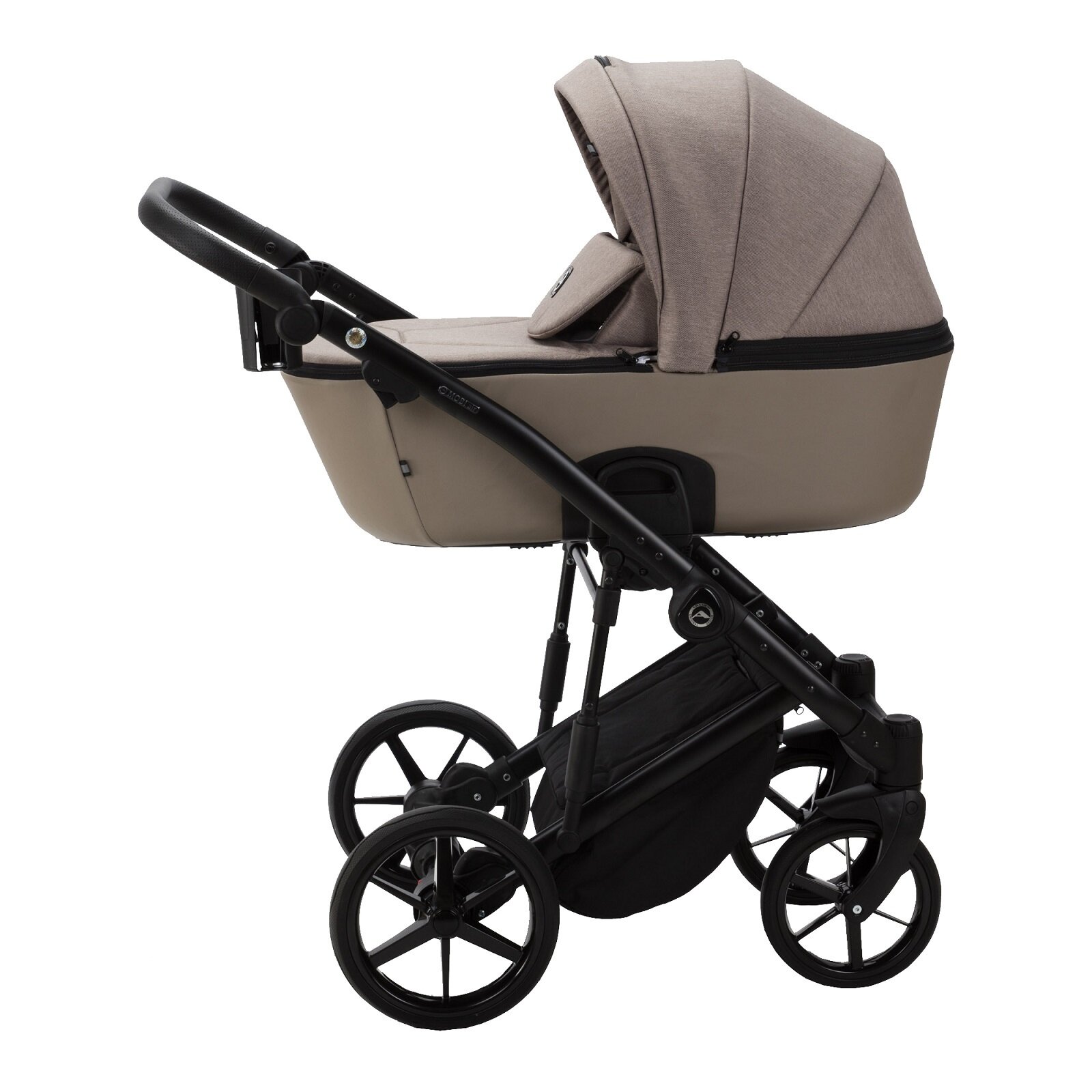 Коляска для новорожденных 2 в 1 Adamex Mobi Lux, всесезонная прогулочная детская коляска темно-бежевый текстиль / эко-кожа