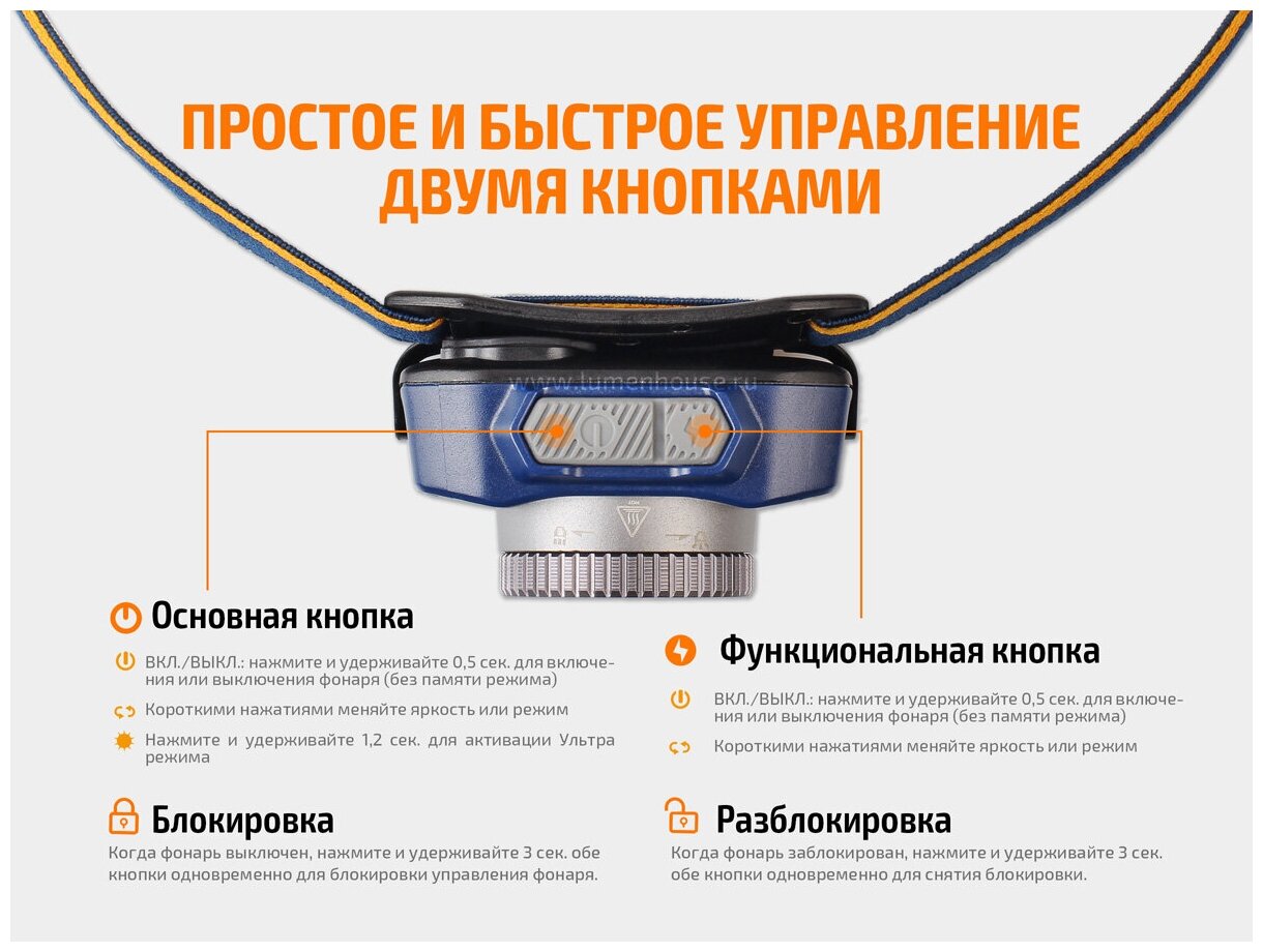 | Подробная комплектация | Фонарь, крепление на голову с перемычкой, кабель для зарядки |