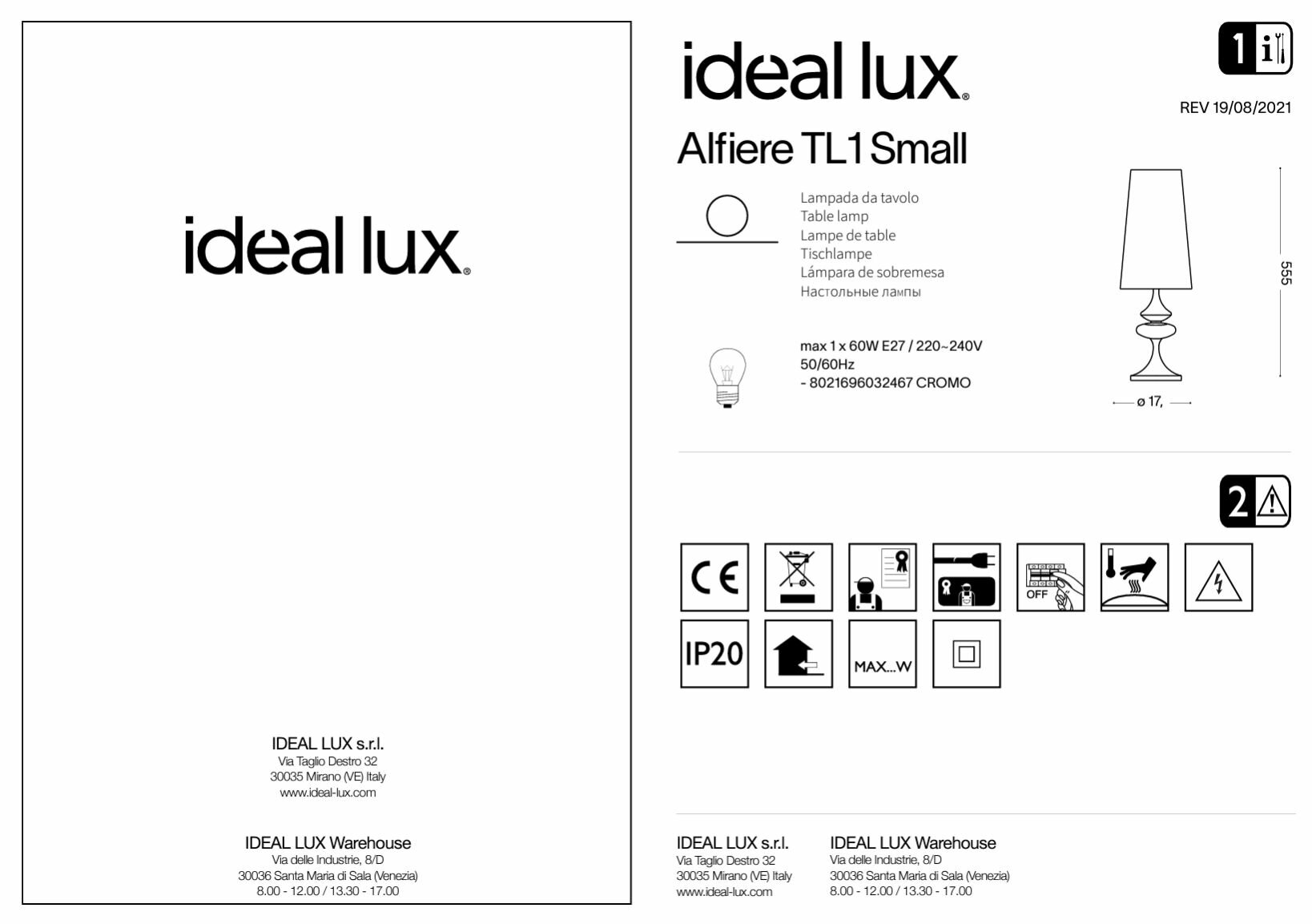 Лампа настольная ideal lux Alfiere TL1 Big макс.1х60Вт IP20 Е27 230В Хром Металл/ПВХ Выключатель Без лампы 032436.