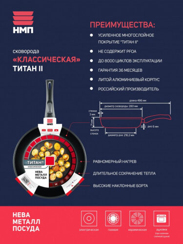 Сковорода нева металл посуда НМП "Классическая", "Титан" 28 см интересное: