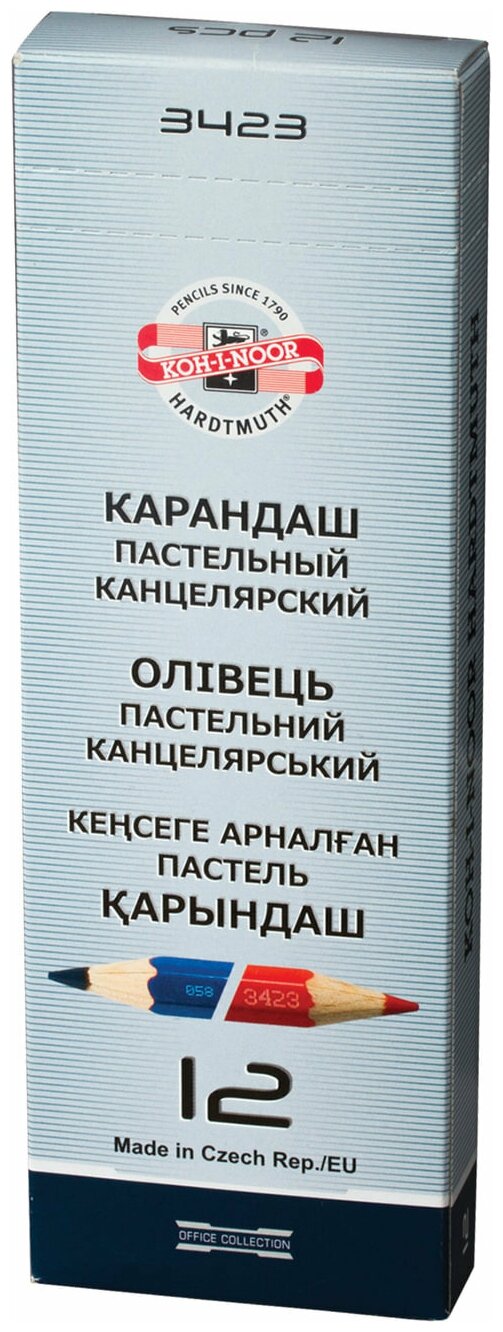 Карандаш двухцветный утолщённый KOH-I-NOOR, 1 шт., красно-синий, грифель 3,8 мм, картонная упаковка интересное: