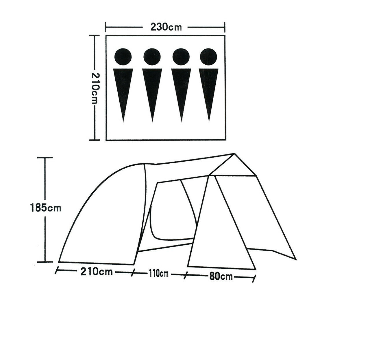 | Ширина внешней палатки | 210 см |