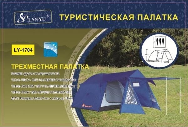 Купить Палатка кемпинговая трёхместная LANYU LY-1704, синий