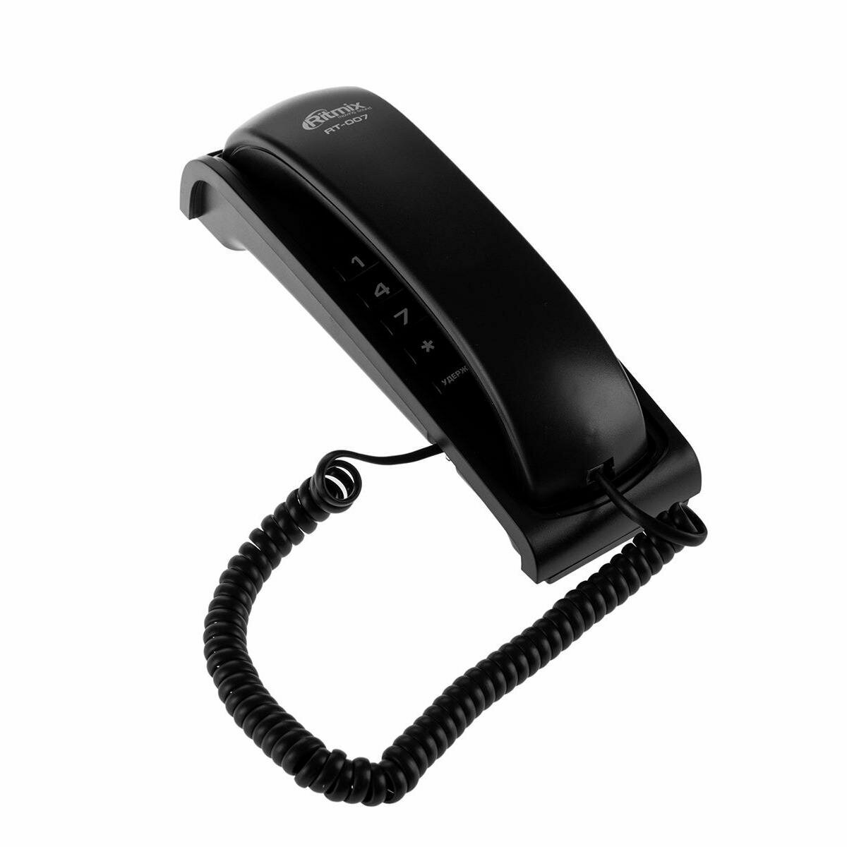 Проводные телефоны RITMIX Проводной телефон Ritmix RT-007, настольно-настенный, стильный дизайн, черный