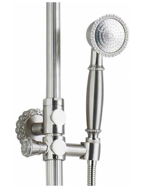 Душевая стойка Zorg Antic A 103DS-SL, латунь серебро, ретро винтажная, однорычажная, с тропическим душем, премиум