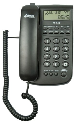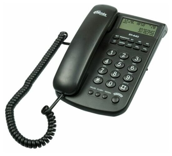 Телефон проводной Ritmix RT-440 чёрный, память, дисплей - дата, время