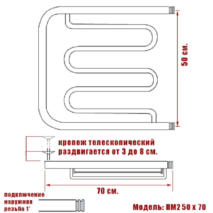 Полотенцесушитель Ника ECON ПМ-2 50/70 с полкой интересное: