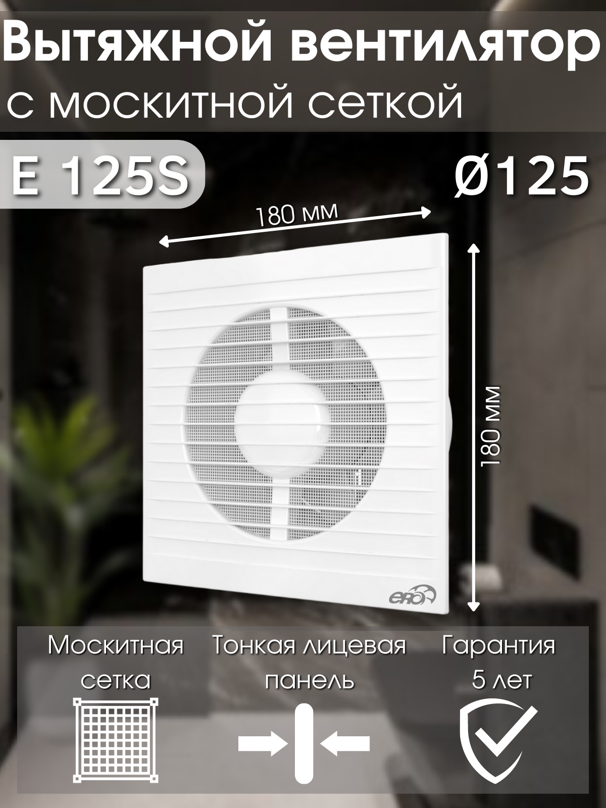 Вентилятор вытяжной ERA E 125 S, 180x180 мм, d=125 мм, 220‒240 В