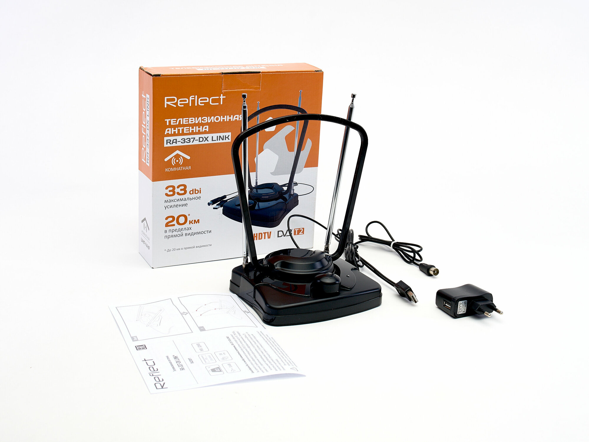 Антенны ТВ Reflect Антенна комнатная Reflect LINK RA-337-DX (активная, МВ-ДМВ, с б/п, 33 дБи, коробка)