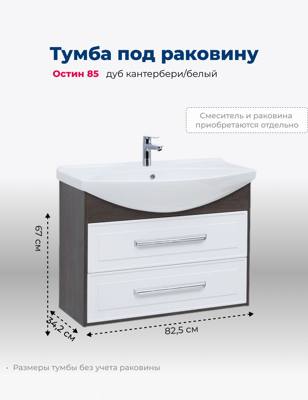 Тумба под раковину Aquanet Остин 85 дуб кантербери/белый интересное: