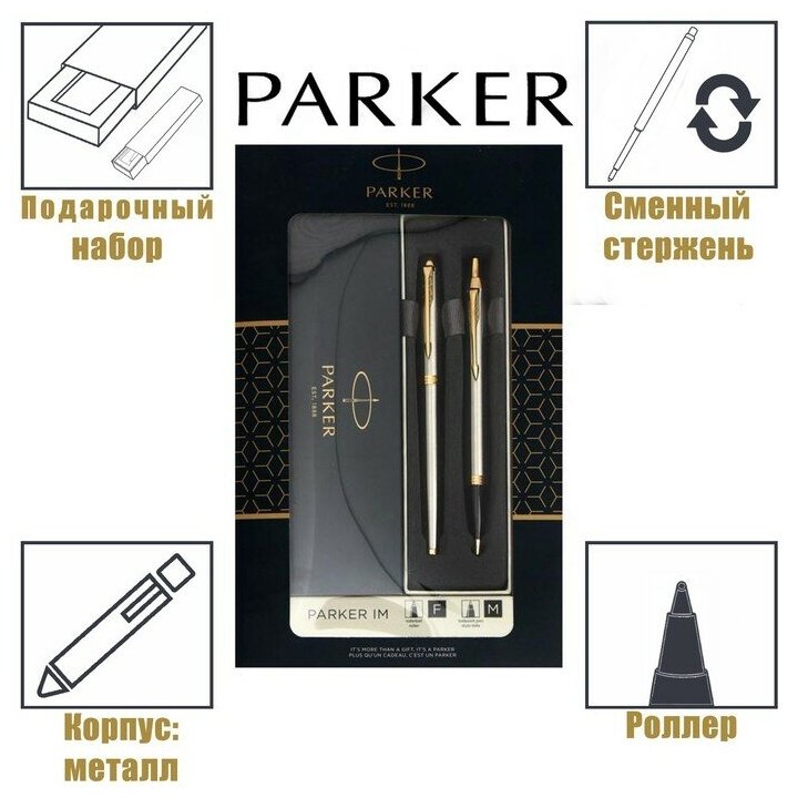 СохранитьНабор: шариковая + роллерная ручки Parker IM Core TK223, Brushed Metal GT 2093217-NS интересное: