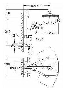 Душевая система 250 мм Grohe New Tempesta Cosmopolitan System 26689000