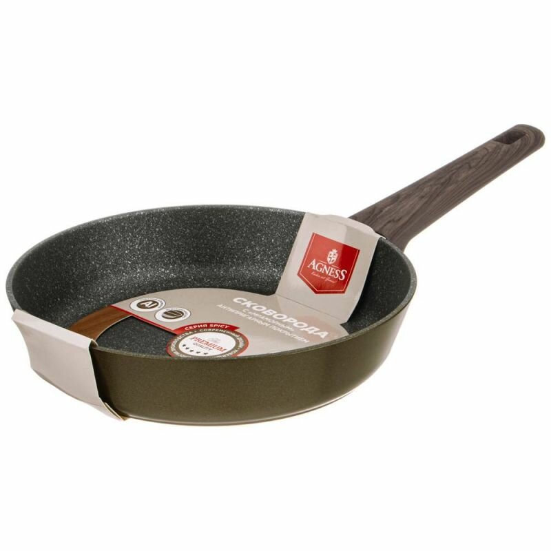 Сковорода для индукционной плиты AGNESS "SPICY" С "мраморным" антипригарным покрытием 28 х 5.8 см оливковый