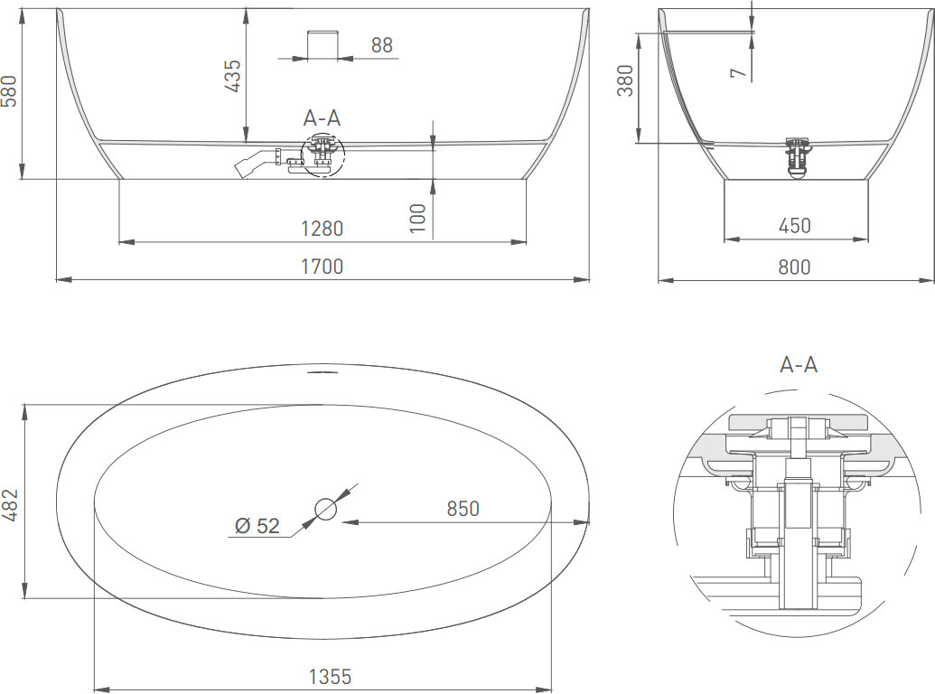 Ванна отдельностоящая из искусственного камня ALDA 170x80 S-Stone Матовая