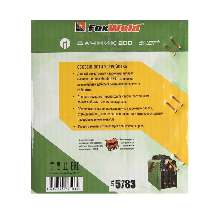 Сварочный аппарат инверторный FOXWELD Дачник 200, 5300 Вт, 20-200 А, диаметр 4 мм, Hot start интересное: