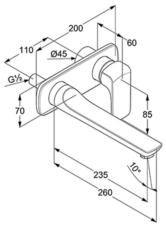 Смеситель настенный KLUDI AMEO для умывальника, внешняя монтажная часть, длина излива 235 мм, хром (