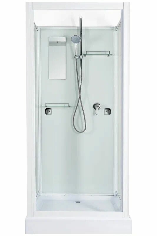 | Плюсы: | Верхний и ручной душ, раздвижные двери, две полочки. |