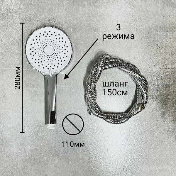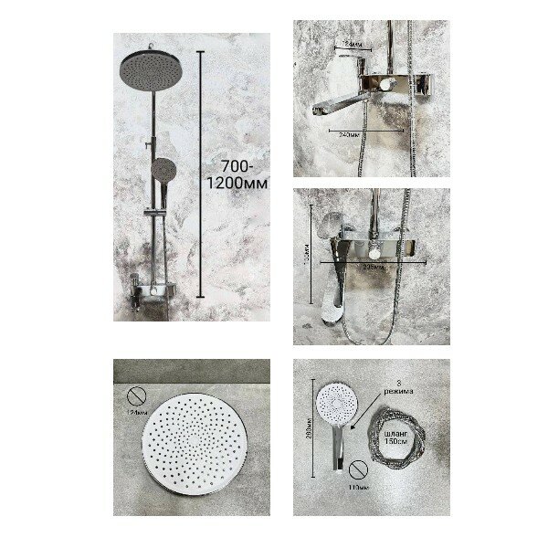 | Комплектация | Смеситель / душевая штанга / душевая лейка / верхний душ / шланг 150см / эксцентрики / отражатели / аэратор |
